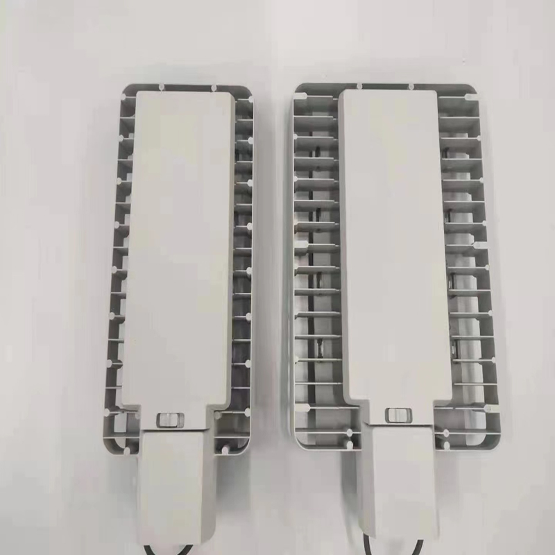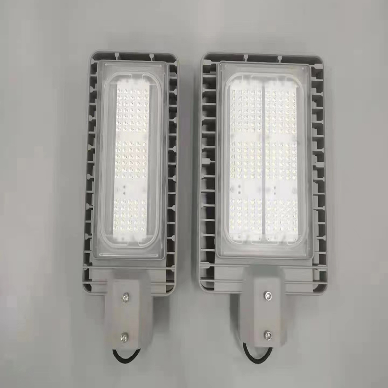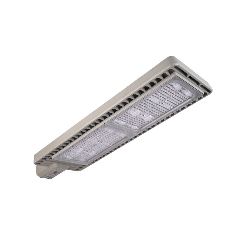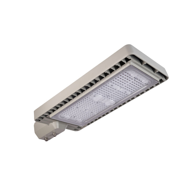 Our LED street light adopts a classic Philips-inspired modular design, featuring a robust die-cast aluminum housing with a matte gray finish. The rectangular, streamlined profile not only mirrors the iconic Philips aesthetic but also optimizes heat dissipation through its finned side structure. The modular lens design allows for flexible power configurations, while the adjustable mounting bracket ensures seamless compatibility with standard street lamp poles, blending functionality with urban aesthetics.